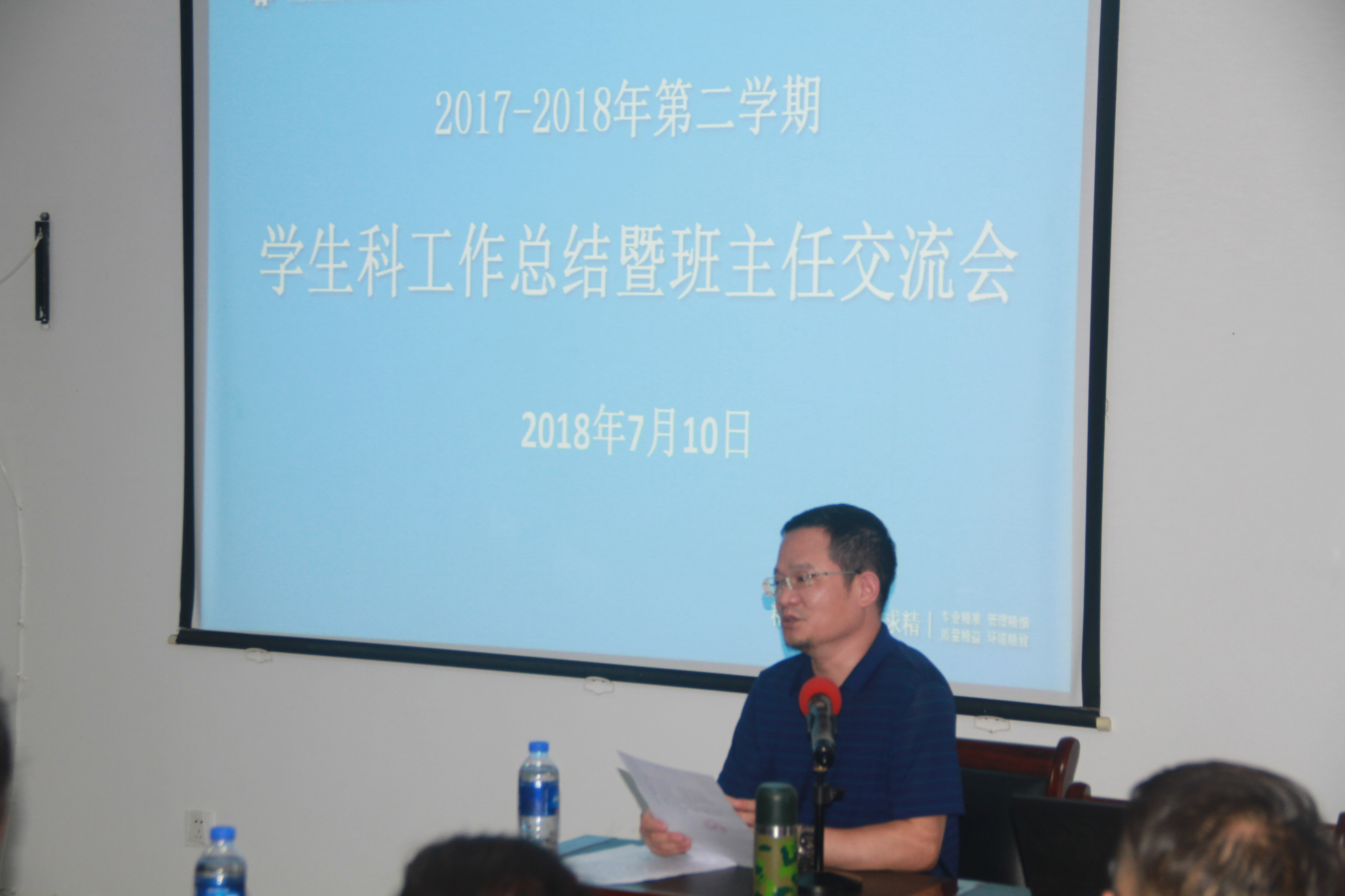 会议首先由学生科科长全建华做工作总结汇报。全科长肯定了班主任本学期的工作付出,并从班主任队伍建设、班级管理和学生习惯养成等方面进行了总结,同时,提出了下学期的工作计划。全科长的发言,不仅梳理了本学期的工作内容,同时也使班主任的业务素质和理论水平得到提高,规范了班级管理的工作,形成了拼搏赶超的学习氛围。