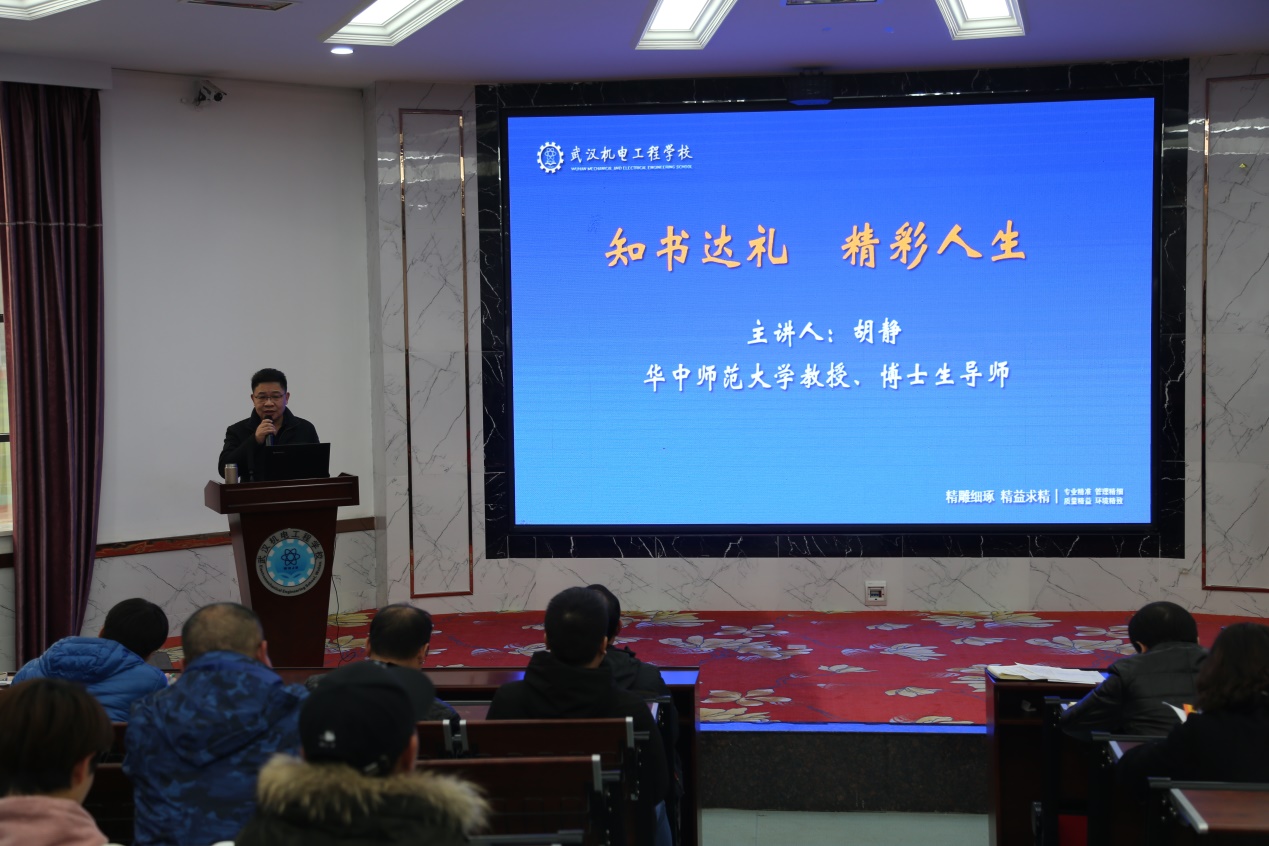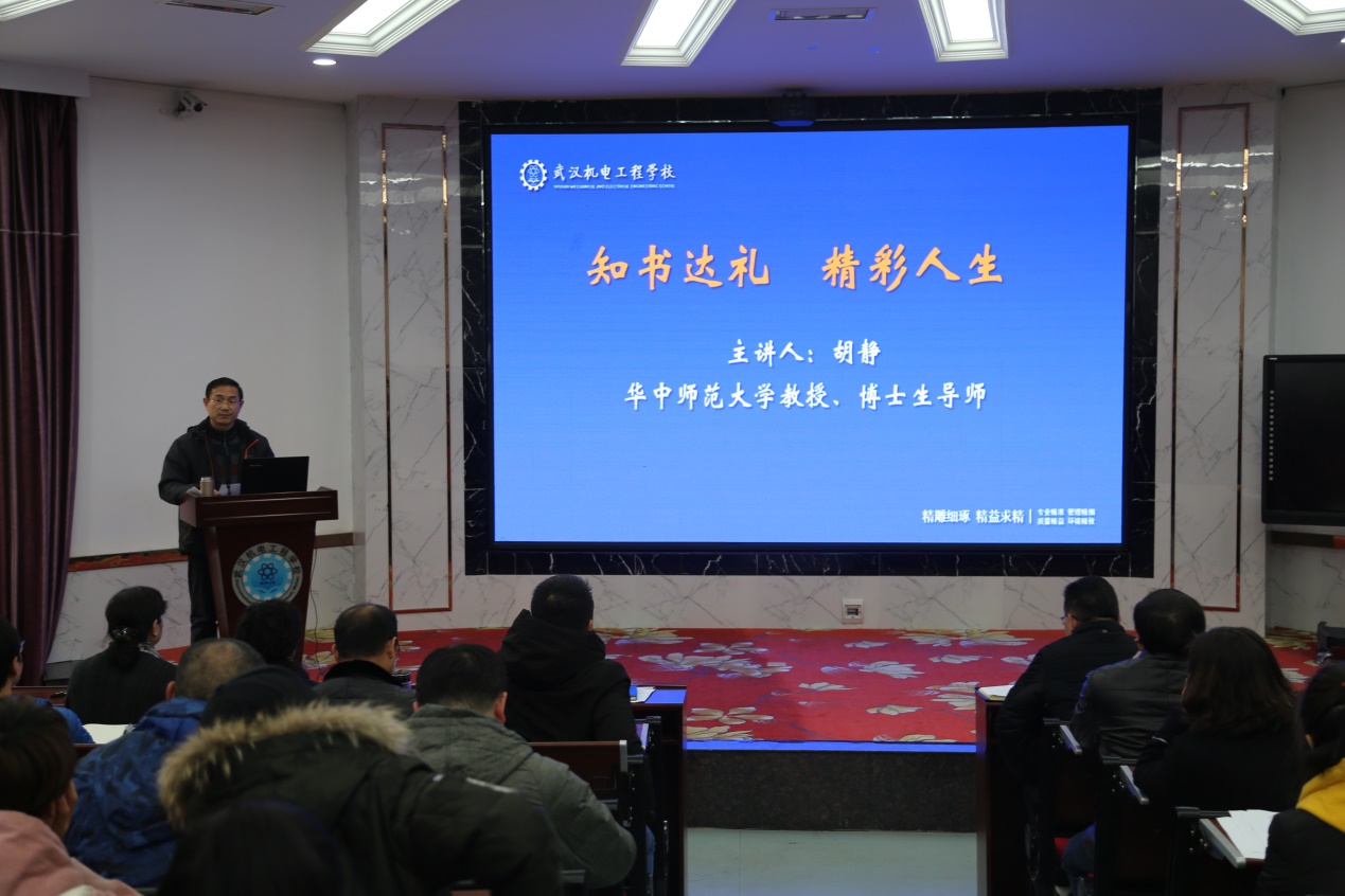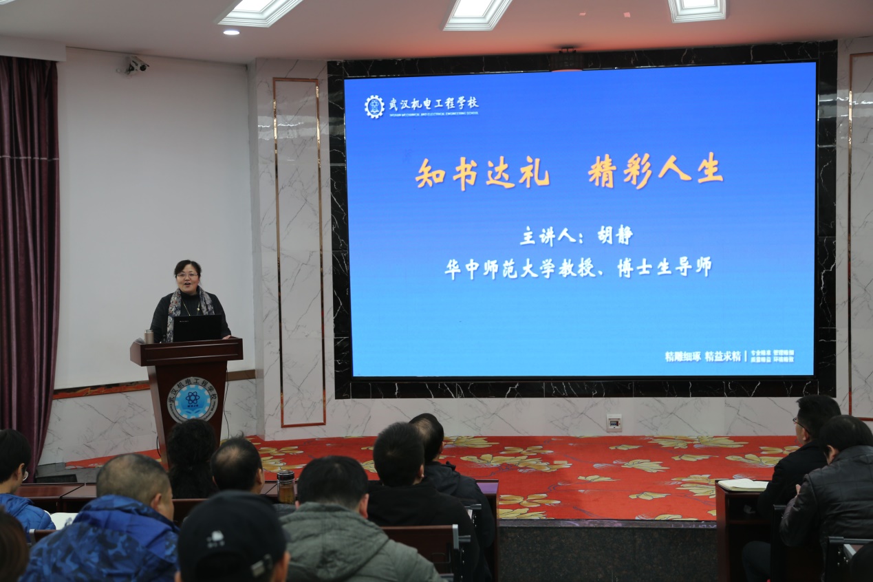 12月17日下午,2018年武汉市女职工“流动课堂”走进武汉机电工程学校第50期走进武汉机电工程学校,华中师范大学教授胡静为全体师生作“知书达礼 精彩人生”专题讲座。校长龙善寰主持,全校1770 名师生聆听了此次讲座。