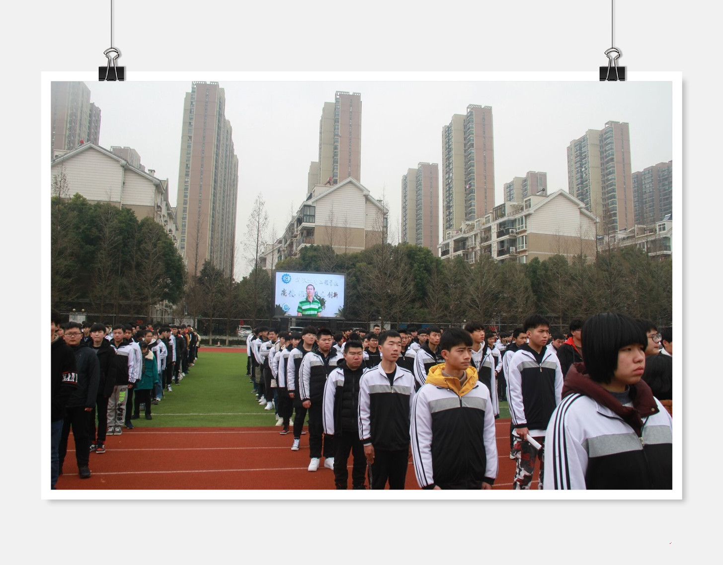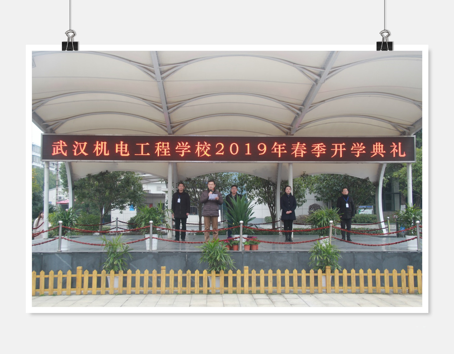 校长龙善寰在讲话中指出,2019年是新中国成立70周年,第七届世界军人运动将在武汉举办,我们学校也将迎来建校65周年。新的一年,将团结带领全体师生站在新起点,树立新形象,抢抓新机遇,展示新作为,谋求新发展。作为中国特色社会主义新时代的建设者和接班人,龙校长希望同学们:第一,要有梦想和目标。敢于有梦、勇于追梦、勤于圆梦,要有成功的坚定信心和坚强决心。第二,要把学习作为主业。在学习过程中,同学们还要践行学校精雕质量文化,树立质量意识,弘扬工匠精神,做到知行合一。第三,要不断提高综合素质。希望同学们积极参与学校活动的同时,还要利用课余时间多读书,多锻炼,做一个积极、向上、阳光的学生。