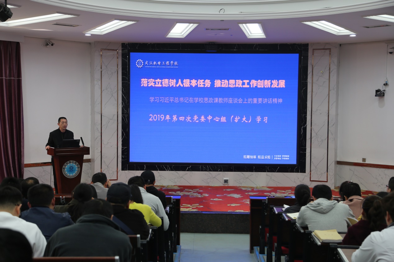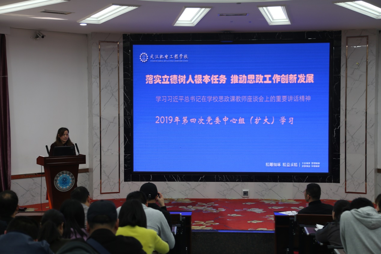 按照近期市委理论学习中心组和市教育党委中心组关于学习贯彻习近平总书记在学校思政课教师座谈会上重要讲话精神的要求,3月29日,我校迅速组织开展本年度第四次党委中心组(扩大)学习,中心组成员、各部门的教职工参加了此次学习。党委委员、副校长杨斌主持本次学习。